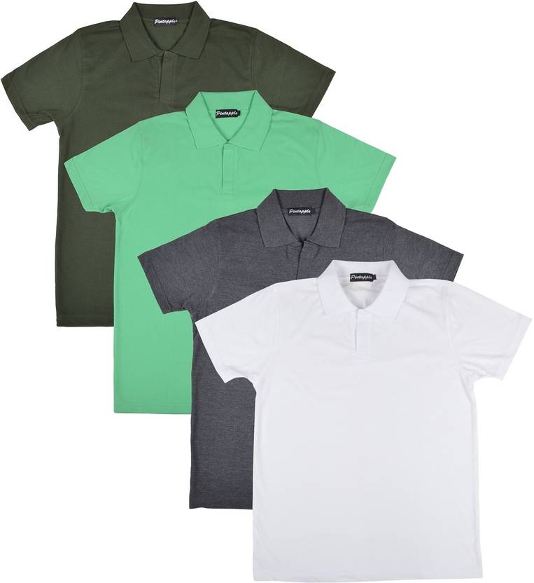 Pintapple Pack of 4 Men Solid Polo Neck Cotton Blend Dark Green, White, Grey, Light Green T-Shirt