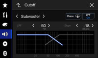 You can adjust the cutoff frequency and cutoff slope for each HPF (front and rear speaker separately) and LPF (subwoofer), respectively, to keep the transitions between the frequency ranges smooth.