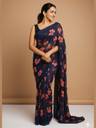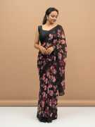 Crafted from a premium 'weightless' fabric, this saree drapes like a dream and feels incredibly comfortable against your skin, making it ideal for all-day wear. The fabric is adorned with an enchanting all-over floral print, bursting with colour and life, ensuring you stand out with grace and style.-RTW-JULI