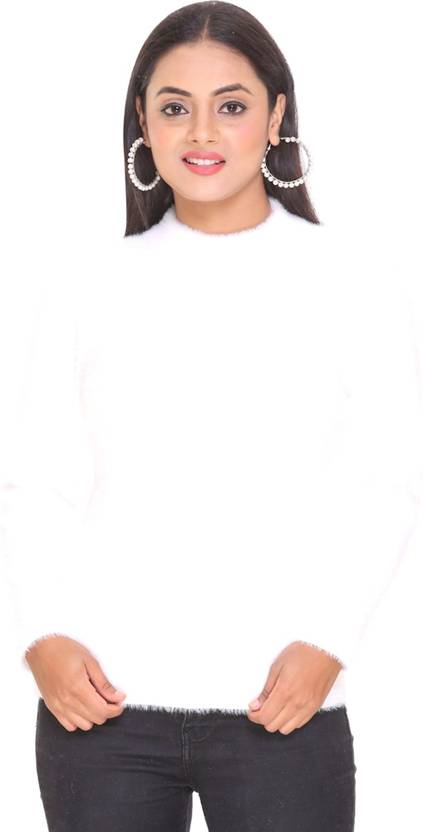 PIPASA WOMEN Solid Crew Neck Casual Women White Sweater