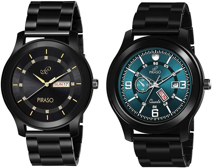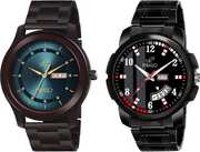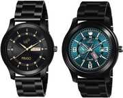 (ANALOG DAY-DATE WORKING DISPLAY COMBO BLUE&BLACK DIAL&BLACK CHAIN WATCH FOR MEN