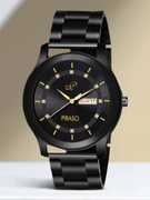 Black Dial & Black Chain Watch With Day And Date Display Watch For Boys