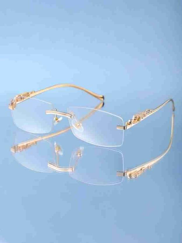 Retro Luxury Gold Metal Frameless Rectangle Leopard Clear Lens
