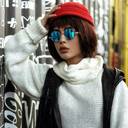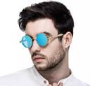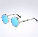 BLUE LENS SILVER FRAME ROUND SUNGLASSES