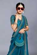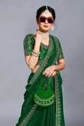 Creating a stunning silhouette, this designer saree will lend you a look worth flaunting. This marvellous saree will present you more glamorous and beautiful to your peers than ever. In line with the hottest trend this season, this ravishing saree lends a glamorous look. The fabric lends a shine to the saree, lending a rich look. This saree is easy to carry and handle and is perfect for both summer and winter climate. This saree is crafted by skill craftsmen without compromising on its quality. With this beautiful design and fabric, this saree will fetch you oodles of compliments and praise.