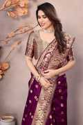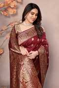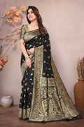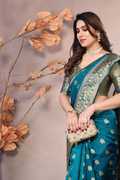 Pireva Self Design, Woven Banarasi Jacquard Saree (Green)