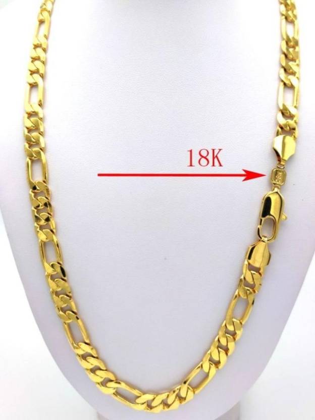 Mens Trendy Artificial Gold Plated Chain. high Quality gold plated chain Gold plated Men Chain Metal : Brass plating - Gold Plating Chain Size : Approx-20 inch Long Chain Weight : Approx- 42 Gram Type:ChainColor:GoldenMaterial:Brass Closure Type:HookWearability:DailyPlating:Gold Plated Pack of:Pack of 1 Style:Traditional Gross Weight (g):42 Disclaimer:Product colour may slightly vary due to photographic lighting sources or your monitor settings Jewellery Care:Keep it away from perfumes &, NOTE- please check the size before purchasing.