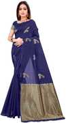 Teal and gold-toned kanjeevaram saree Woven design saree with woven design border Has zari detail. The saree comes with an unstitched blouse piece The blouse worn by the model might be for modelling purpose only. Check the image of the blouse piece to understand how the actual blouse piece looks like. Size & Fit:- Length: 5.5 meters, Material & Care :- Saree Fabric: Silk Blend Blouse Fabric: Silk Blend Dry Clean