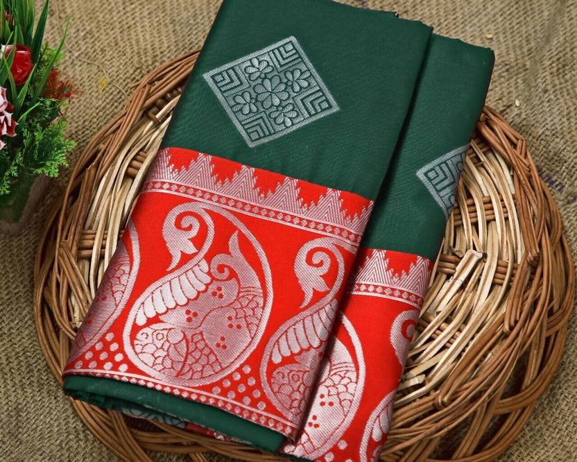 Teal and gold-toned kanjeevaram saree Woven design saree with woven design border Has zari detail. The saree comes with an unstitched blouse piece The blouse worn by the model might be for modelling purpose only. Check the image of the blouse piece to understand how the actual blouse piece looks like. Size & Fit:- Length: 5.5 meters, Material & Care :- Saree Fabric: Silk Blend Blouse Fabric: Silk Blend Dry Clean