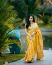 Teal and gold-toned kanjeevaram saree Woven design saree with woven design border Has zari detail. The saree comes with an unstitched blouse piece The blouse worn by the model might be for modelling purpose only. Check the image of the blouse piece to understand how the actual blouse piece looks like. Size & Fit:- Length: 5.5 meters, Material & Care :- Saree Fabric: Silk Blend Blouse Fabric: Silk Blend Dry Clean