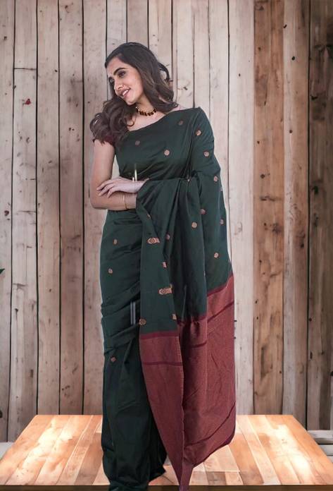 Teal and gold-toned kanjeevaram saree Woven design saree with woven design border Has zari detail. The saree comes with an unstitched blouse piece The blouse worn by the model might be for modelling purpose only. Check the image of the blouse piece to understand how the actual blouse piece looks like. Size & Fit:- Length: 5.5 meters, Material & Care :- Saree Fabric: Silk Blend Blouse Fabric: Silk Blend Dry Clean