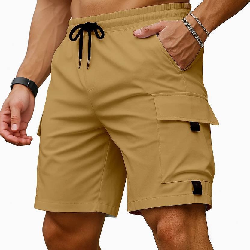 Solid Men Brown Cargo Shorts