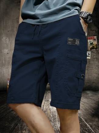 Pitzz Solid Men Dark Blue Cargo Shorts
