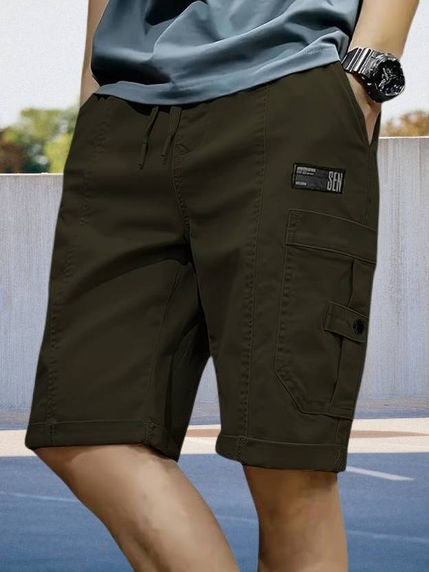 Pitzz Solid Men Dark Green Cargo Shorts