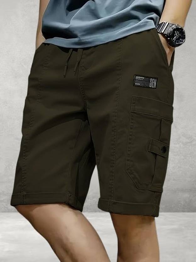 Pitzz Solid Men Dark Green Cargo Shorts