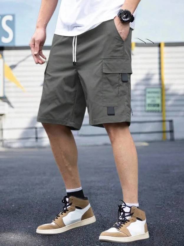 Pitzz Solid Men Dark Grey Cargo Shorts