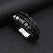 Retro Punk Geometric Cord & Leather Bracelet for Men's