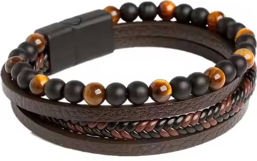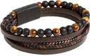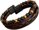 Multilayer Natural Stone Tiger Eye Leather Cuff Bracelet for Men's