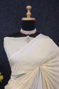 PIYA DESIGNER Solid/Plain Kasavu Cotton Linen Saree (Beige)