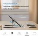 PLASTIC LAPTOP STAND PLASTIC LAPTOP STAND MULTI-ANGLE ADJUSTABLE DESIGN laptop & tablet stand provides 6-speed adjustable height, adjust to comfortable operating angle and height based on your actual need. And the ergonomic design makes for easy watching and typing, relieving neck, shoulder and spinal pain. HEAT DISSIPATION : Plastic high heat conductivity can Absorb and Conduction heat from the MacBook and Laptop stand to serve as a heat sink.By lifting laptop off the desktop, it dissipates heat buildup and keeps the laptop stand cooler, easing the strain on the battery and internal components, keep your laptop stand running in good condition. Multi-Angle Adjustable : The Plastic Laptop Stand Or Metal Laptop Stand Or Foldable Laptop Stand Or Better Known As A Plastic Laptop Stand Provides 6 Adjustable Height, Adjust To Comfortable Operating Angle And Height Based On Your Actual Need. And The Ergonomic Design Makes For Easy Watching And Typing, Relieving Neck, Shoulder And Spinal Pain.