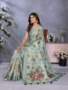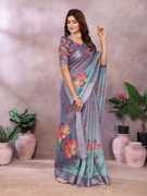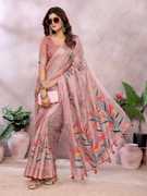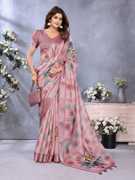 Floral Print Bollywood Cotton Silk Saree (Pink)