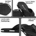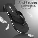 Step into comfort with these anti-fatigue flip-flops, designed for lightweight and supersoft wear. Featuring a durable anti-skid PU sole, they offer superior shock absorption and comfortable cushioning for all-day ease. The super sturdy straps ensure a secure fit, making them perfect for casual outings, beach days, or simply relaxing at home. Their sleek black design with white stripe accents adds a touch of style to any casual ensemble. Compatible with shorts, t-shirts, swimwear, and other casual loungewear.