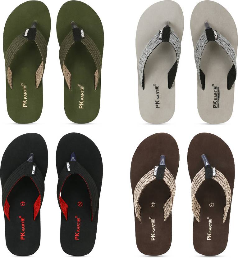 PKKART Men Flip Flops (Black, Grey, Brown, Green , 8)