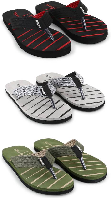 PKKART Men Flip Flops (Black, Grey, Green, Red , 9)