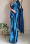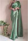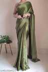 ZINLORIZ Woven Bollywood Satin Saree with Unstitched Blouse (Gold, Black)