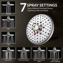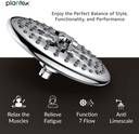 Plantex shower head for bathroom features a durable ABS (acrylonitrile butadiene styrene) construction with a nickel chrome finish, offering precise water flow control and easy maintenance. Its 10-inch head combines sleek design with efficient coverage for a luxurious shower experience. Our multi-function shower head features eight versatile spray settings: rain massage, strong saturating, misty trickle, rain+misty, massage+misty, rain+strong, and saturating experience. These options provide a wide range of bathing experiences, making it ideal for everyone in the family—men, women, and kids alike. Enjoy a soothing and customizable shower every time. The metal filter is smart - it helps to use water more efficiently. It doesn't waste water by making sure the flow is just right. So, you get a great shower experience without using too much water, which is good for the environment.The package includes 1 piece of head shower for bathroom and the size is: (l) 25 x (w) 9 x (h) 25 cm.