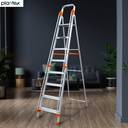 Plantex Ladder for Home/8 Step Foldable Ladder with Safe Hand Rails-(Orange-Silver) Aluminium Ladder (With Platform, Hand Rail)