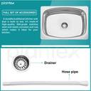 1 Piece of 24x18 kitchen sink with 1 piece of Round Coupling and 1 Piece of Hose pipe.