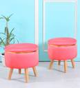 PLATINUMCRAFT Solid Wood Standard Ottoman (Finish Color - Pink, Pre Assembled)