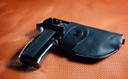Metal Gun Style Cigarette Lighter With Leather Cover