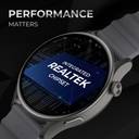 PLAYFIT 1.43'' AMOLED, Rotary Crown, 2.5D All-View Display with BT Calling Smartwatch (Grey Strap, Free Size)