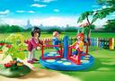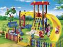 Adventures await at the Children's Playground featuring tons of outdoor fun for everyone! Take a spin on the merry-go-round or rock away on the bouncy horse. Climb up the climbing wall and into the jungle gym for a bird's eye view of the park before gliding back down to earth on the giant yellow slide. Kids will feel like they're flying as they soar back and forth in the swing. Set includes two adult figures, three child figures, jungle gym with slide and climbing walls, swing, colorful fencing, merry-go-round, bouncy horse, park bench, bird with nest, squirrels, and tons of other accessories. Recommended for ages four to ten.