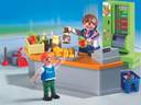 Healthy and nutritious food consumed on time keeps you fit. Buy a healthy lunch in the School Cafeteria and stay healthy and fit with Playmobil School Cafeteria ideally suitable for both boys and girls. Choking hazard due to small parts is possible, hence not applicable for children below 3 years of age.This cafeteria set includes two figures , a counter, cash register, working vending machine and other accessories. The other accessories available with this set are tray, bread, basket, broom, dustpan, toolbox,fruit pieces, bottles and food packages. Tasty yet healthy options prevail ultimate with Playmobil School Cafeteria. With this Playmobil School Cafeteria helps your children acquire healthy habits like having food on time, eating healthy food, keeping the dining area clean etc. Lead your child to a healthier lifestyle with Playmobil School Cafeteria.