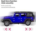 ManojEnterprises Toys present 1:36 scale die cast pull back Blue Rubicon Jeep Wrangler. This metallic Blue car has inbuilt high quality pull back machine that makes the car go as fast as you want. The front doors can be opened manually. It is made of good quality material with nice finishing & smooth edges. Light weight, durable & easy to carry anywhere. The Rubber Wheels create nice friction on the surface making the car run smoothly and fast. Its Latest & Trending among the new launched toy cars, kids will love to play and collect all colours. recommended for kids boys girls age 3 years & above .Realistic Design