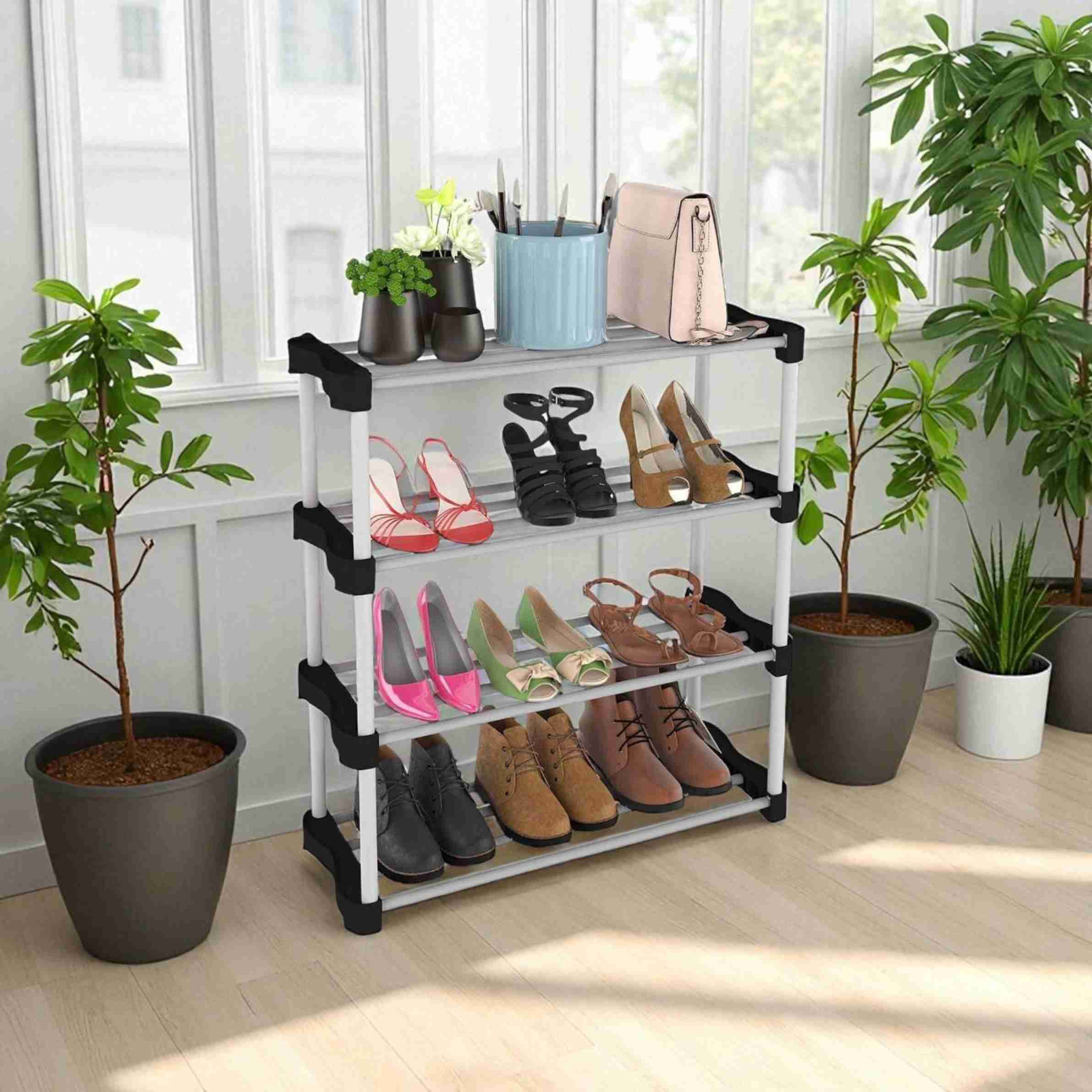 Corner Entryway Shoe Rack Space-Saving Angled Storage Unit Plastic Shoe Rack (Multicolor, 4 Shelves, Pre-assembled)