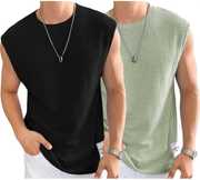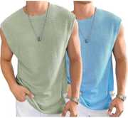 Fabric Waffle Polyester Pack of 2 Casual Printed Gym Tshirt Look Men Vest With Stay comfortable and stylish with the Made from high-quality polyester fabric, this vest offers a soft feel against the skin while ensuring durability and long-lasting wear. The plain white design provides a versatile look that pairs perfectly with any outfit, making it ideal for casual wear, gym sessions, or loungewear.