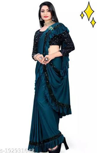 This Saree is by KHODAL FASHION. it is made from Lycra . It Looks very beautiful and attractive because of the Contrast Blouse,Saree Boder.This makes the saree look attractive and stylish and complements the saree making it a suitable choice for your wardrobe. It's the Perfect traditional that will lend effortless to Your Style.Looking stunning and classy with this saree for Women from the house of KHODAL FASHION. The saree is made from Lycra Fabric and available in various colors. The saree has a beautiful contemporary design and can be worn to festive occasions Like Party, Wedding, Festival, Casual, Bridal, Work, or a casual occasion where you want to flaunt your style with this outfit. Saree comes with Sequence lace.The saree comes with 5.3 mtr and 0.80 mtr separate Blouse Piece. It is Unstitched and can be altered according to your desired style and fit. You can pair this saree with a clutch and a pair of fashion sandals or any casual footwear of your choice for a Wedding Look when dressing up for a party. You can also pair it with a pair of Earrings and Bangles when adorning this outfit for a Festive Occasion.You can pair this saree with a clutch and a pair of fashion sandals or any casual footwear of your choice for a Wedding Look when dressing up for a party. You can also pair it with a pair of Earrings and Bangles when adorning this outfit for a Festive Occasion.