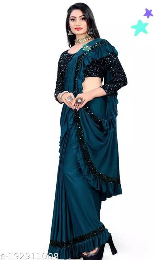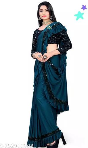 This Saree is by KHODAL FASHION. it is made from Lycra . It Looks very beautiful and attractive because of the Contrast Blouse,Saree Boder.This makes the saree look attractive and stylish and complements the saree making it a suitable choice for your wardrobe. It's the Perfect traditional that will lend effortless to Your Style.Looking stunning and classy with this saree for Women from the house of KHODAL FASHION. The saree is made from Lycra Fabric and available in various colors. The saree has a beautiful contemporary design and can be worn to festive occasions Like Party, Wedding, Festival, Casual, Bridal, Work, or a casual occasion where you want to flaunt your style with this outfit. Saree comes with Sequence lace.The saree comes with 5.3 mtr and 0.80 mtr separate Blouse Piece. It is Unstitched and can be altered according to your desired style and fit. You can pair this saree with a clutch and a pair of fashion sandals or any casual footwear of your choice for a Wedding Look when dressing up for a party. You can also pair it with a pair of Earrings and Bangles when adorning this outfit for a Festive Occasion.You can pair this saree with a clutch and a pair of fashion sandals or any casual footwear of your choice for a Wedding Look when dressing up for a party. You can also pair it with a pair of Earrings and Bangles when adorning this outfit for a Festive Occasion.