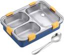 plizzo kitchenware 3 Compartment Stainless Steel Lunch Box, Leakage Proof Lunch Box For School 3 Containers Lunch Box (1100 ml, Thermoware)