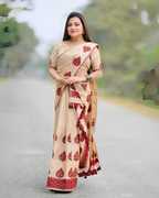 Step into timeless elegance with this Assamese Mekhela Chador saree, beautifully complemented with traditional motifs. The intricate weaving showcases the cultural heritage of Assam, making it an ideal choice for festive occasions, weddings, or ethnic celebrations. Lightweight, breathable, and graceful, this Mekhela Chador brings together tradition and modern style effortlessly.