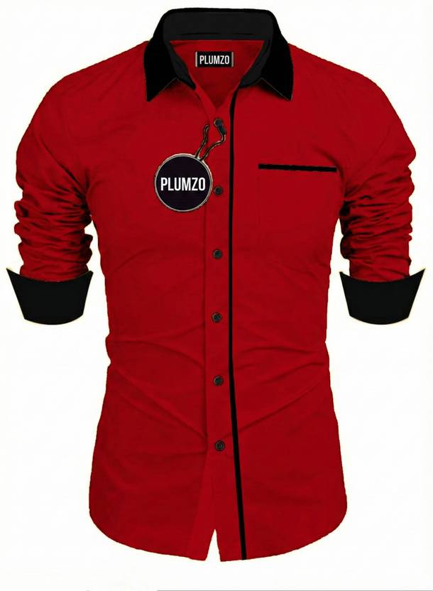 Plumzo Men Solid Casual Red, Black Shirt