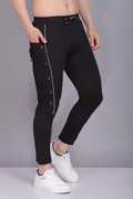 Men Self Design Black Track Pants
