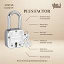 Protect your valuables with the PL-SAMYAK-65MM Double Locking Padlock, designed for ultimate security, durability, and reliability. Built with premium stainless steel, this heavy-duty lock ensures long-lasting performance, corrosion resistance, and high-impact strength.Featuring a 8-lever precision locking system, this padlock offers superior protection against picking, drilling, and tampering. The double-locking mechanism secures both ends of the shackle, making it highly resistant to cutting, prying, and forced entry.Perfect for gates, doors, storage units, warehouses, garages, lockers, and toolboxes, this padlock provides uncompromising security for homes, offices, and businesses. The weather-resistant design ensures protection against rain, dust, and extreme temperatures, making it ideal for indoor and outdoor use.Plus Point Buildsware Pvt Ltd, with over 80 years of experience, is a leader in the locks and hardware industry, offering a vast range of more than 25,000 products