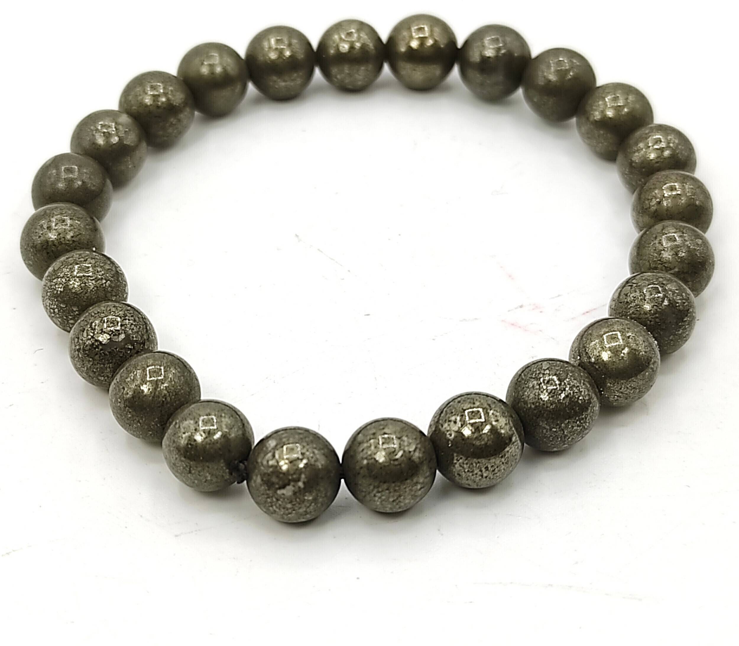 Natural Pyrite Crystal Stone 8mm Beads Bracelet: Weight : 30Grams. Charged using 2 Step Energizing Method and Also Self Energizing Crystals Pack Included.