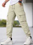 1)Men's Cargo Jogger by Plus91 Brand, 2)Features an elastic waistband for comfortable wear, 3)Multiple pockets for convenient storage, 4)Includes a total of 6 pockets, 5)Combines style and functionality for versatile use
