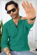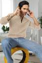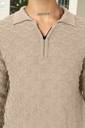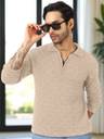 1)Minimalist design pairs effortlessly with jeans, chinos, or joggers, 2)Subtle geometric knit adds depth without overwhelming the look, 3)Zip collar allows adjustable neckline for changing temperatures, 4)Stretch-friendly weave ensures freedom of movement, 5)Ideal for work-from-home, travel, or smart-casual settings